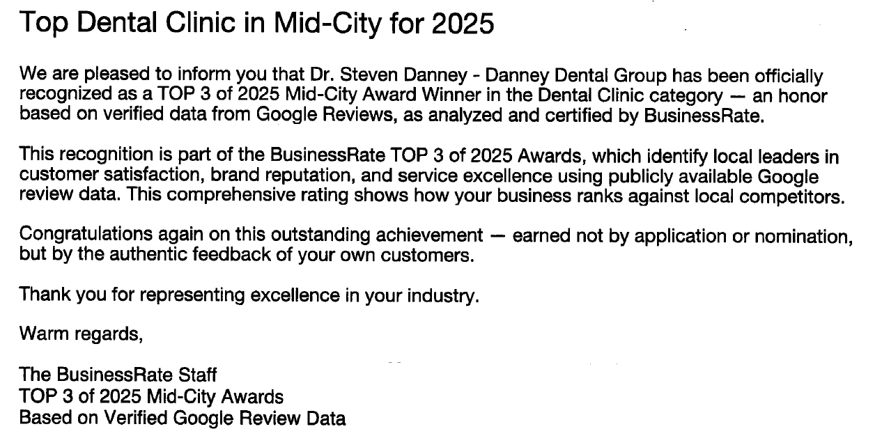 We are very grateful and appreciate the positive experience our patients have shared about our practice on Google! Thank you from Dr. Danney and Team!