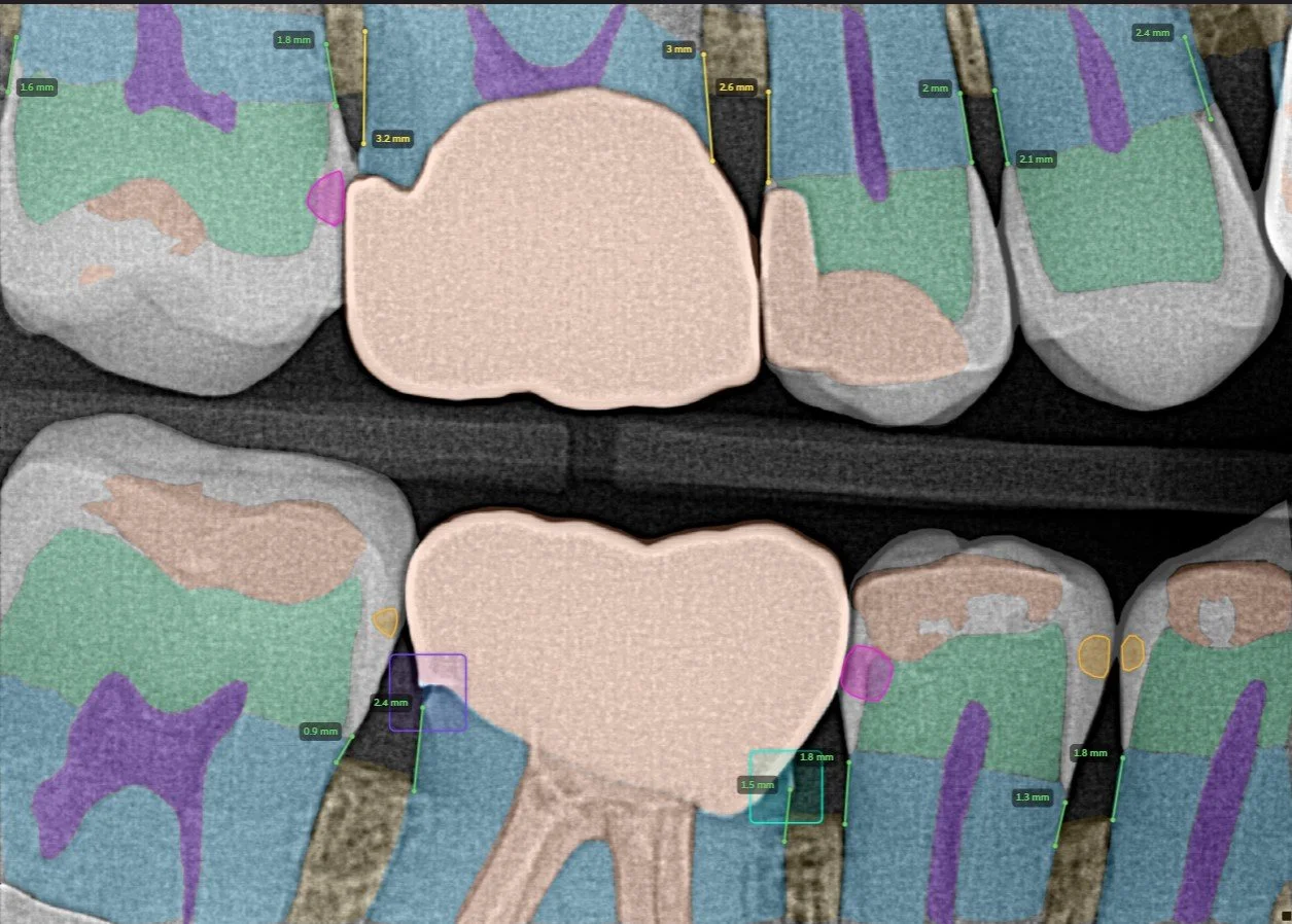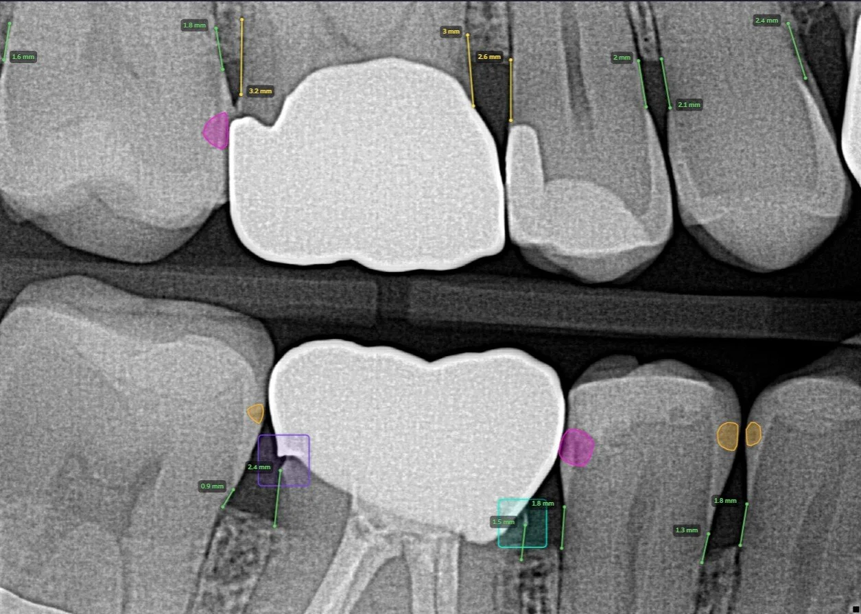 We utilize digital dental radiographic technology which reduces exposure to radiation significantly from using film. Aside from the largely reduced exposure time, the results of the image appear within seconds reduce the need of toxic developing solutions which are harmful to the environment. We also supplement our diagnosis and interpretation of our X-Rays by utilizing Pearl Artificial Intelligence which can read dental radiographs with accuracy of 96% according to a study by the prestigious UCLA School of Dentistry